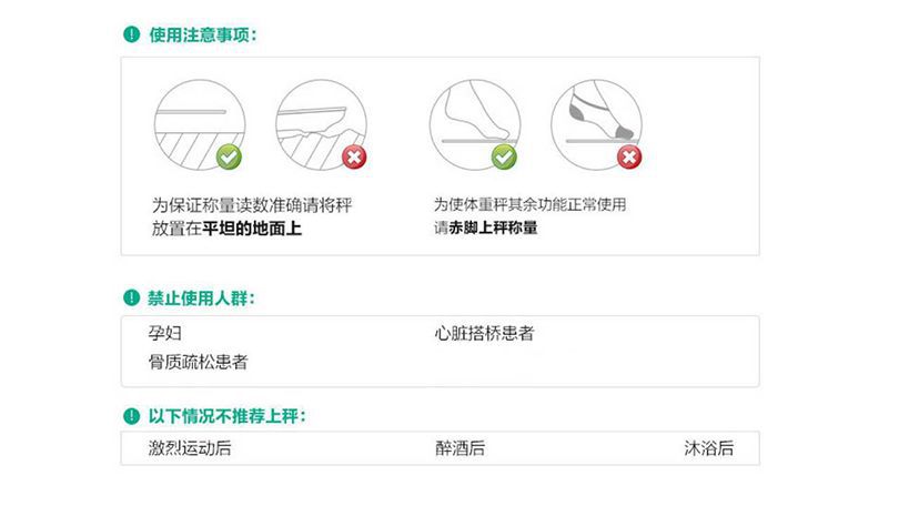 秤面:平面 無(wú)線鏈接:無(wú)線藍(lán)牙4.2,可定制WiFi連接功能 尺寸:300*300*25mm 容量:0.2~180KG (0.4~400lb) BIA技術(shù):雙頻率 準(zhǔn)確性:50g (<100KG) 100g (100~180KG) 面板材料:4*ITO 玻璃材料 表面:光滑高硬度鋼化玻璃 顯示屏幕:LED顯示屏的重量 供電方式:3 * AAA電池/充電鋰電池