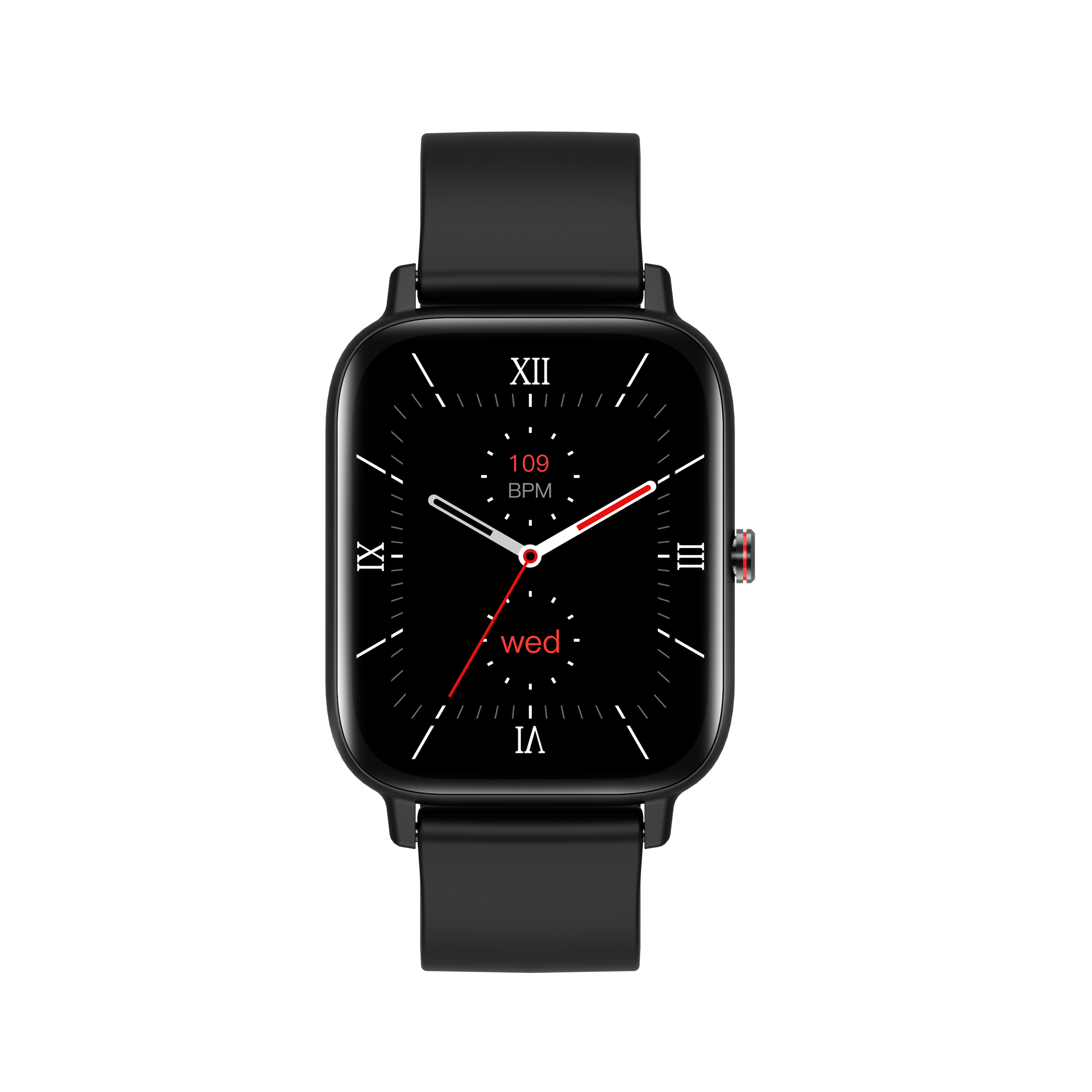 尺寸:44.2*36.2*9.8(不含心率) 芯片:HS6621AG 內(nèi)存:128Mb LCD:1.69 inch 240*280 觸摸顯示:電容式全觸摸 心率傳感器:PAH8007 計步傳感器:SC7A20 藍牙:BT5.0 手表面殼:鋅合金 底殼材質(zhì):塑膠 表帶:硅膠 電池:340毫安 聚合物鋰電池,待機時間 >720小時,使用時間 >360 小時 按鍵:1 個 開關機按鍵 充電類型:磁吸式充電線 防水等級:IP68 GPS:N/A 馬達:Yes